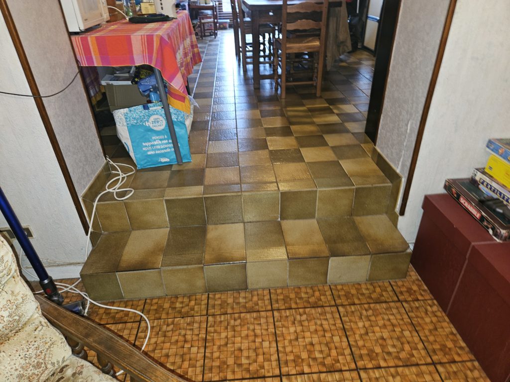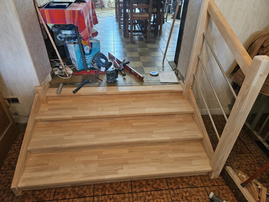 Dans le cadre de notre label Handibat et de notre mission de courtier en travaux, en relation avec son ergothérapeute, nous avons adapté l’escalier existant en multipliant le nombre de marches par 2 et en lui ajoutant un garde-corps.