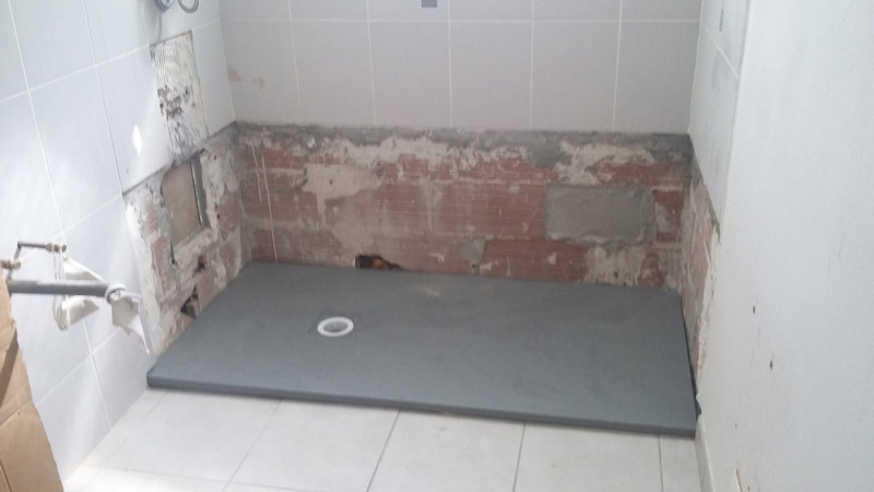 L’espace a du être optimisé, l’ensemble du mobilier déplacé pour pouvoir installer un bac à douche en résine gel coat de 150×75 cm.
