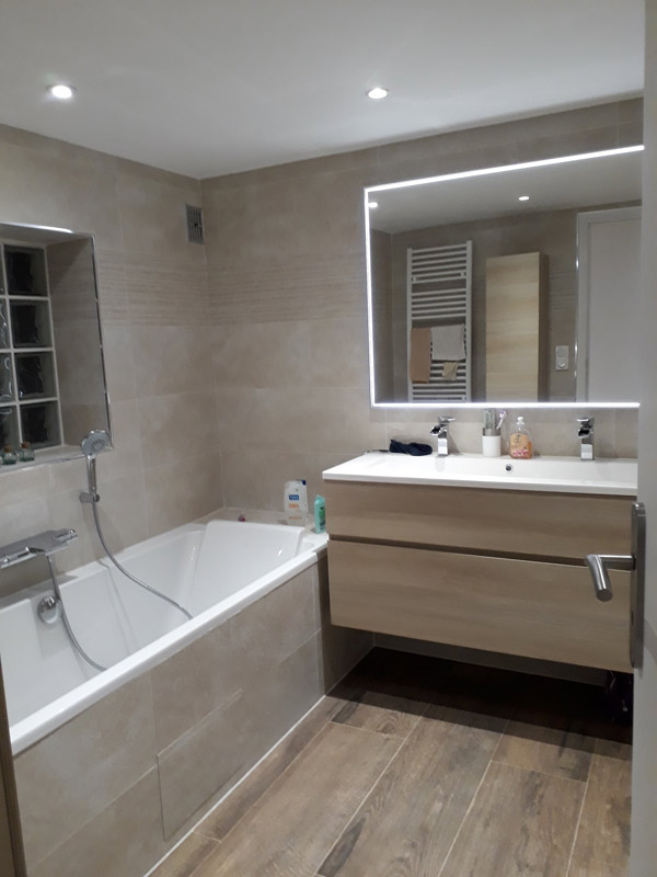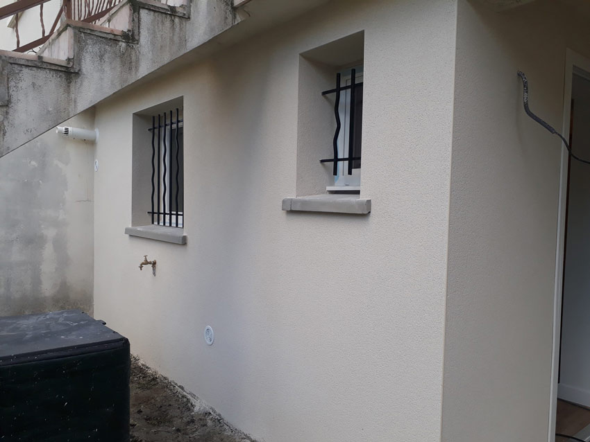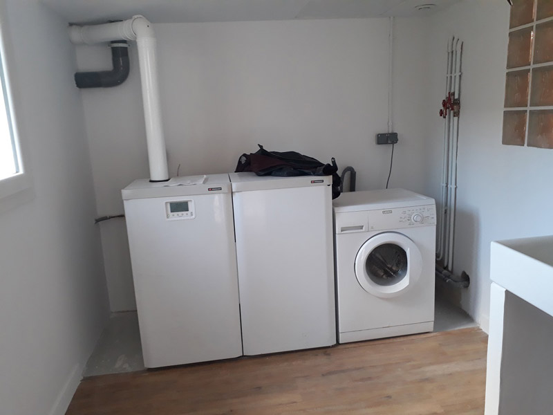Le dessous de la terrasse à été fermé pour créer une buanderie, puis transformer l’ancienne en une confortable salle de bain.