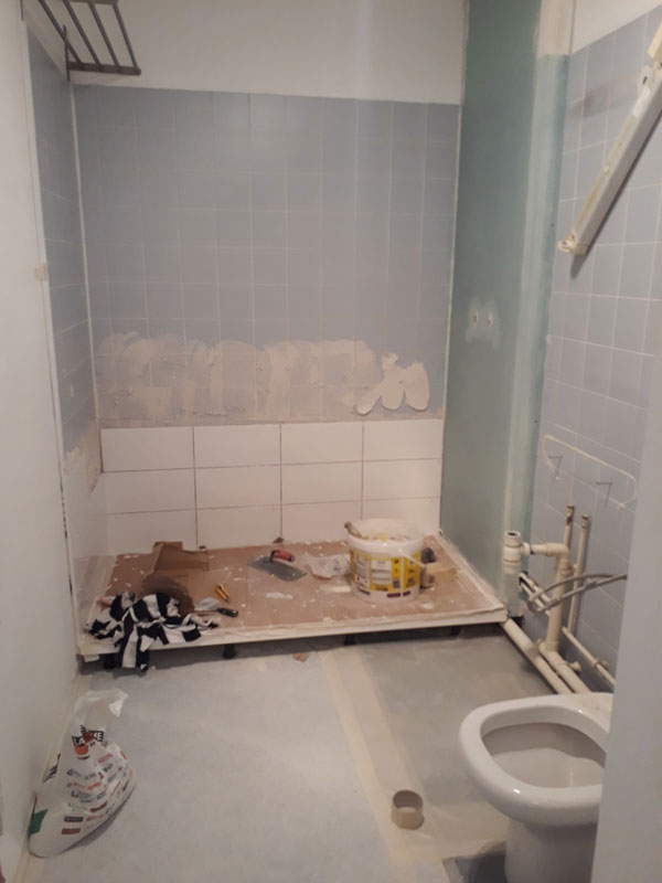 Dans le cadre du label « Handibat » et en collaboration avec l’ergothérapeute, nous avons adapté la salle de bains au patient.
