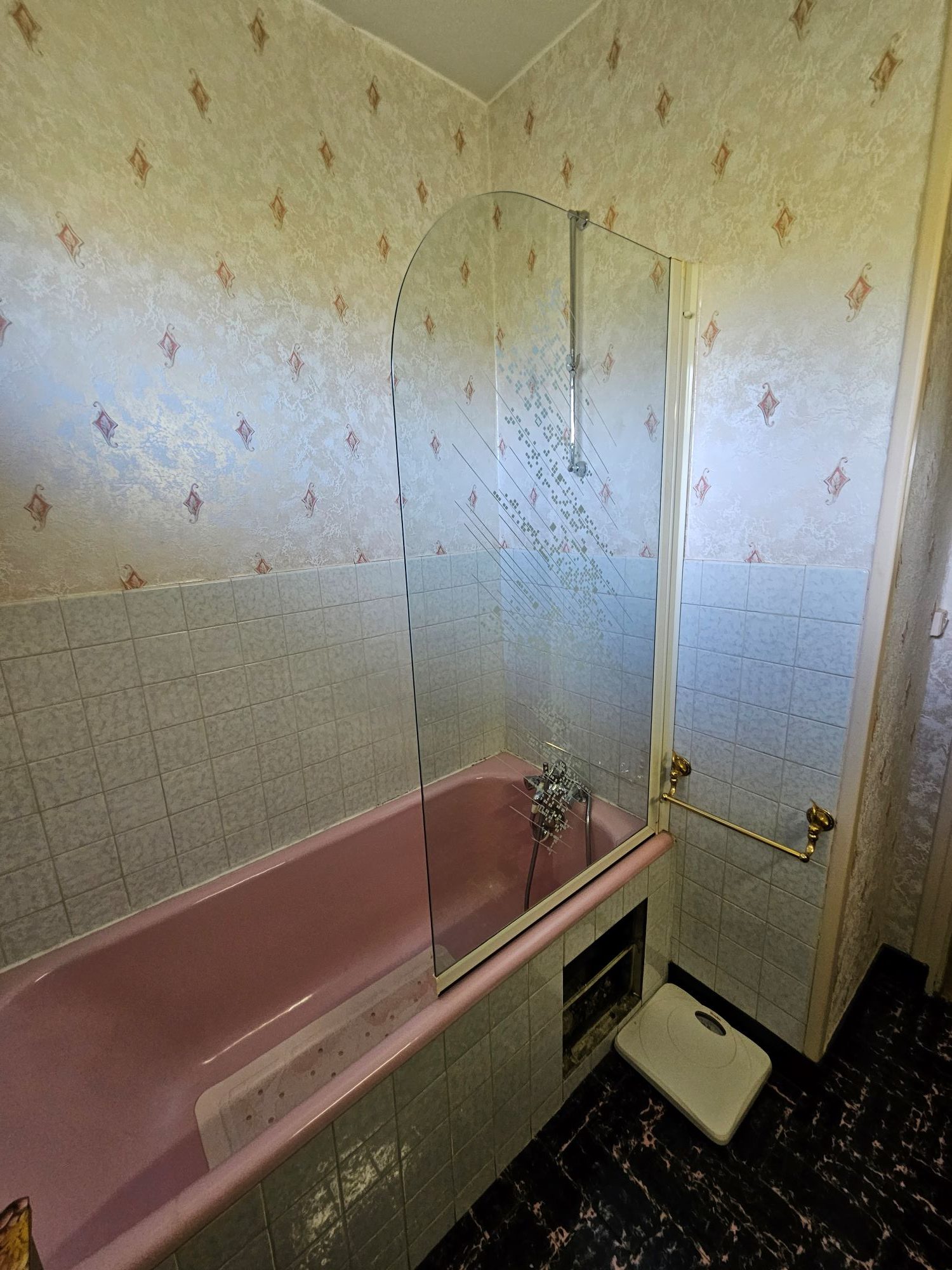 La baignoire a été retirée et remplacée par une douche à accès large et à fond extra-plat.