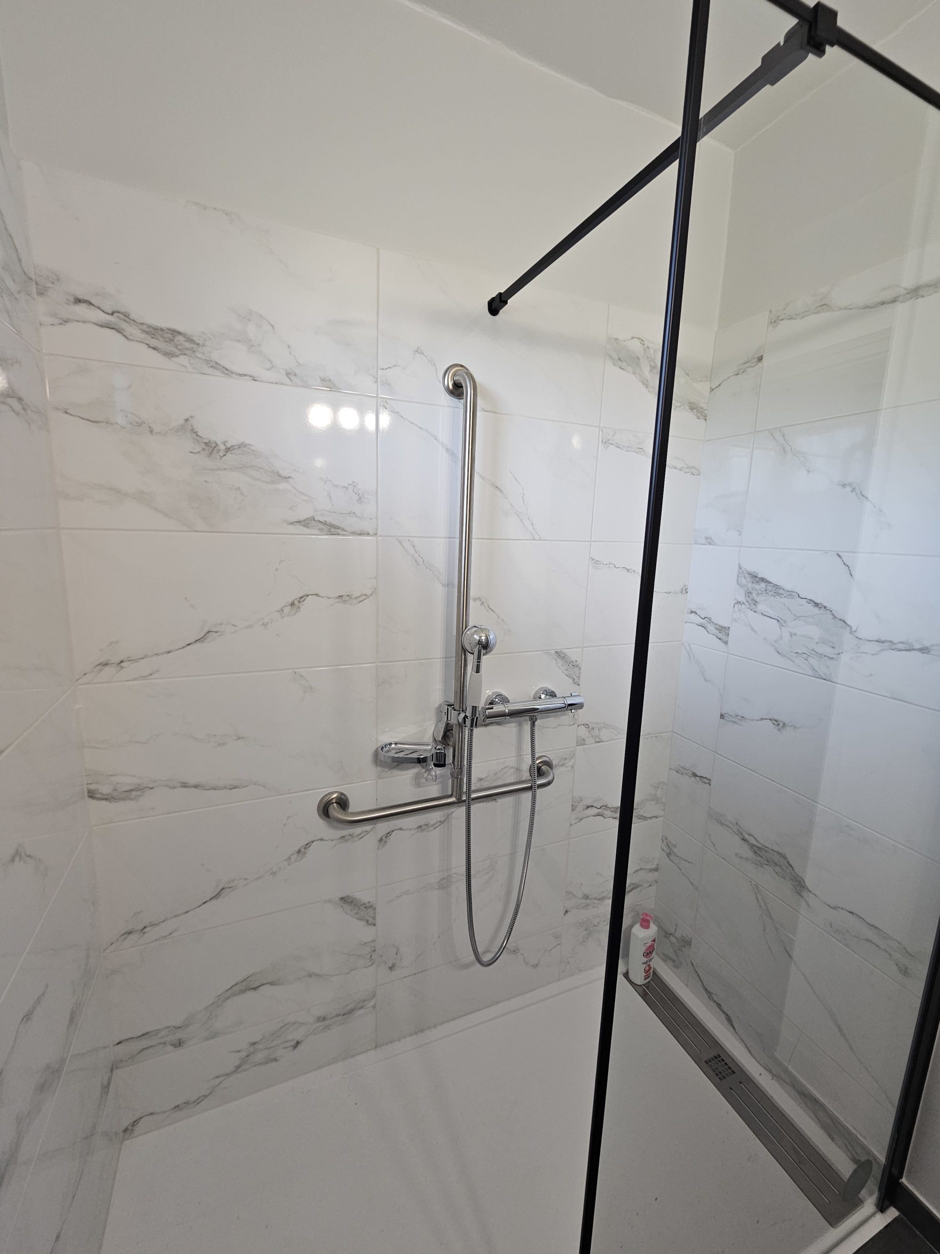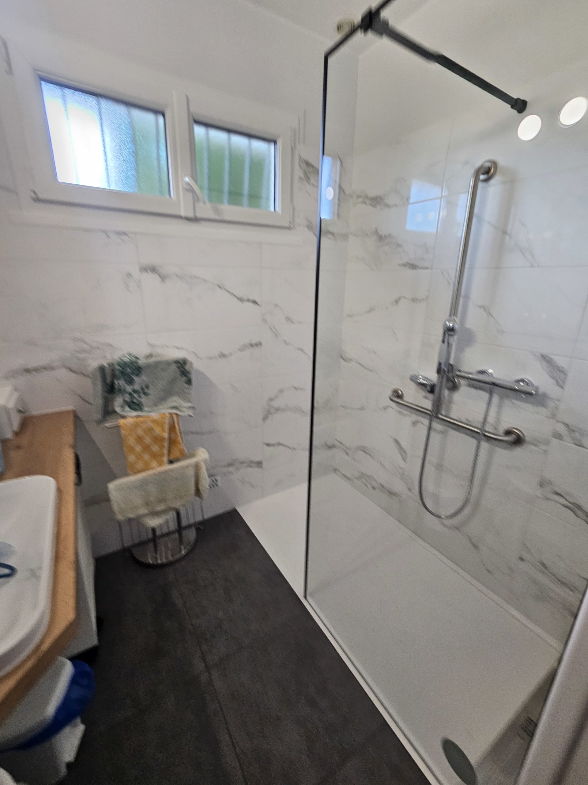 Dans le cadre de notre label Handibat, nous sommes intervenus dans ce pavillon afin de mettre aux normes cette salle d’eau d’après les recommandations de l’ergothérapeute.