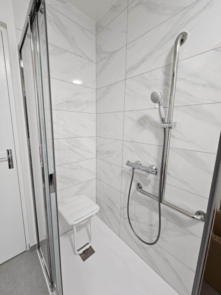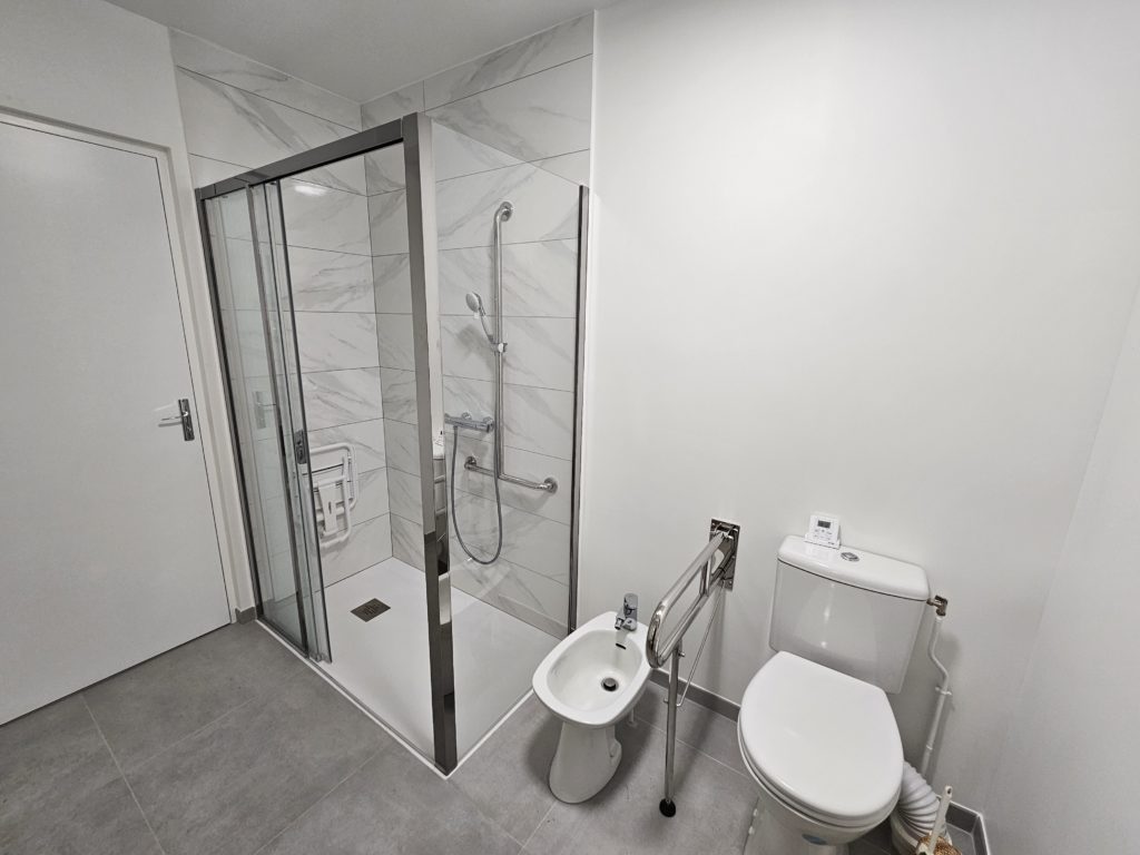 Dans le cadre de notre label Handibat, nous avons adapté la salle de bain en fonction du cahier des charges de l’ergothérapeute.