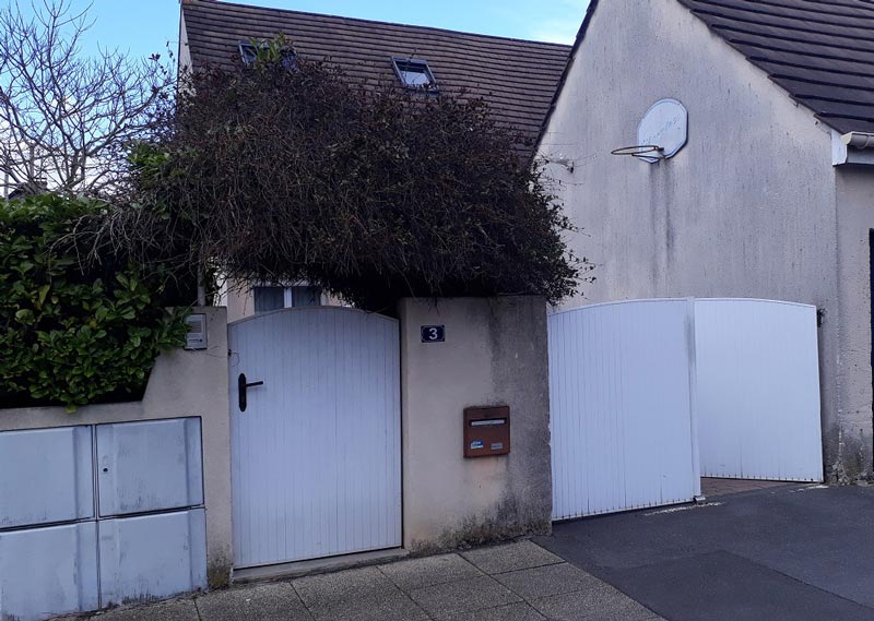 Le portail trop étroit de ce pavillon a été repensé en 4 vantaux pliants pour pouvoir permettre à deux voitures de rentrer et sortir librement.