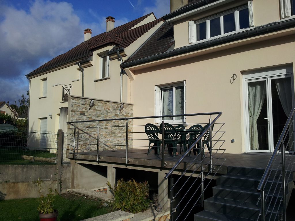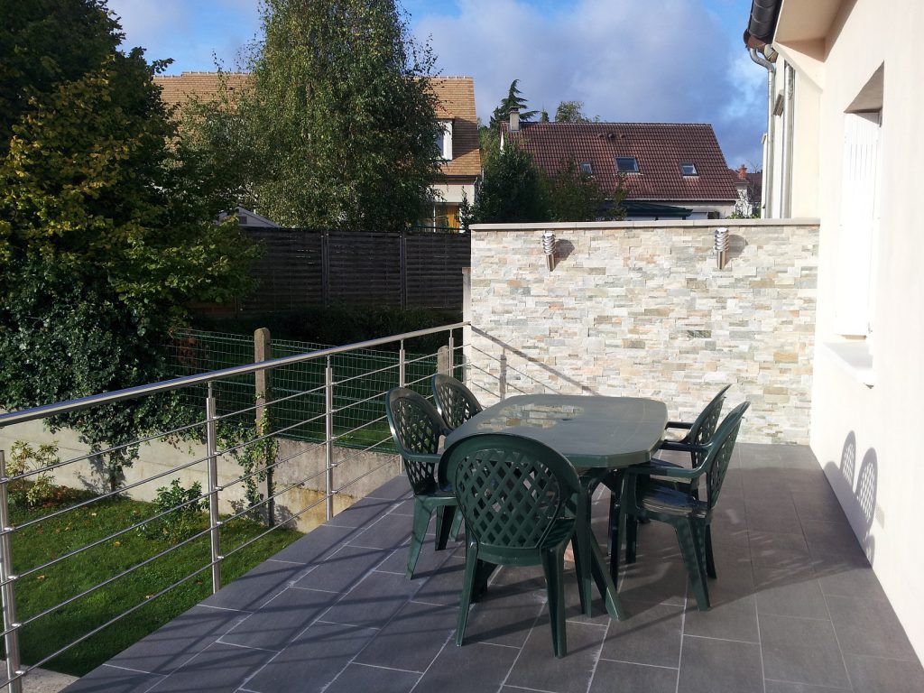 Création d’une terrasse surélevée et de ses brise-vues en pierre de parement. L’objectif de ce projet était de créer un accès direct de la maison au jardin et une terrasse d’agrément. Septembre 2014 à Palaiseau