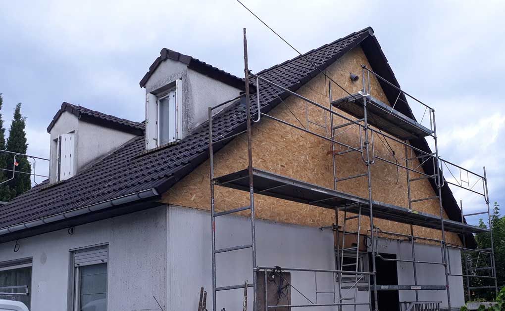 Son ancien bardage a été remplacé au préalable par de l’OSB. Les volets roulants ont été rénovés et intégrés à l’isolation thermique extérieure.