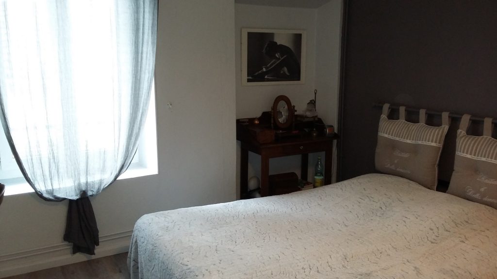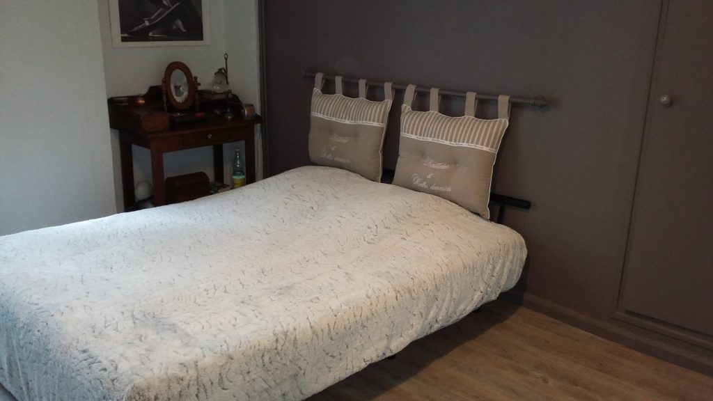 Rafraichissement de cette chambre dans une charmante maison de ville. Le sol a été remis à niveau, la moquette remplacée par un parquet flottant PVC et les murs remis en peinture. à Saint Michel sur Orge en février 2016.