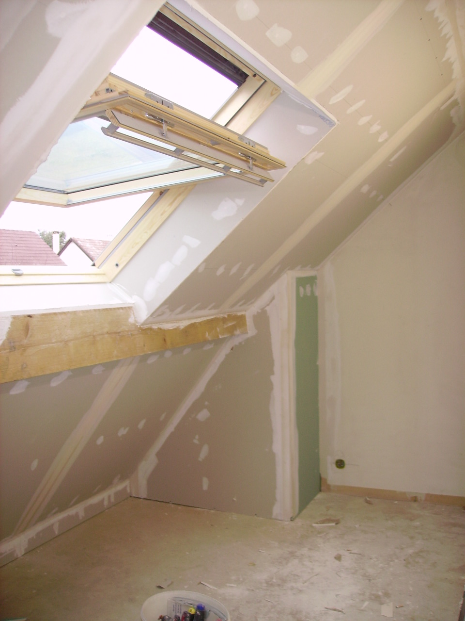 Création d’une chambre dans le dressing par la récupération du pied de comble et l’ouverture d’un velux, janvier 2012 à Gif sur Yvette