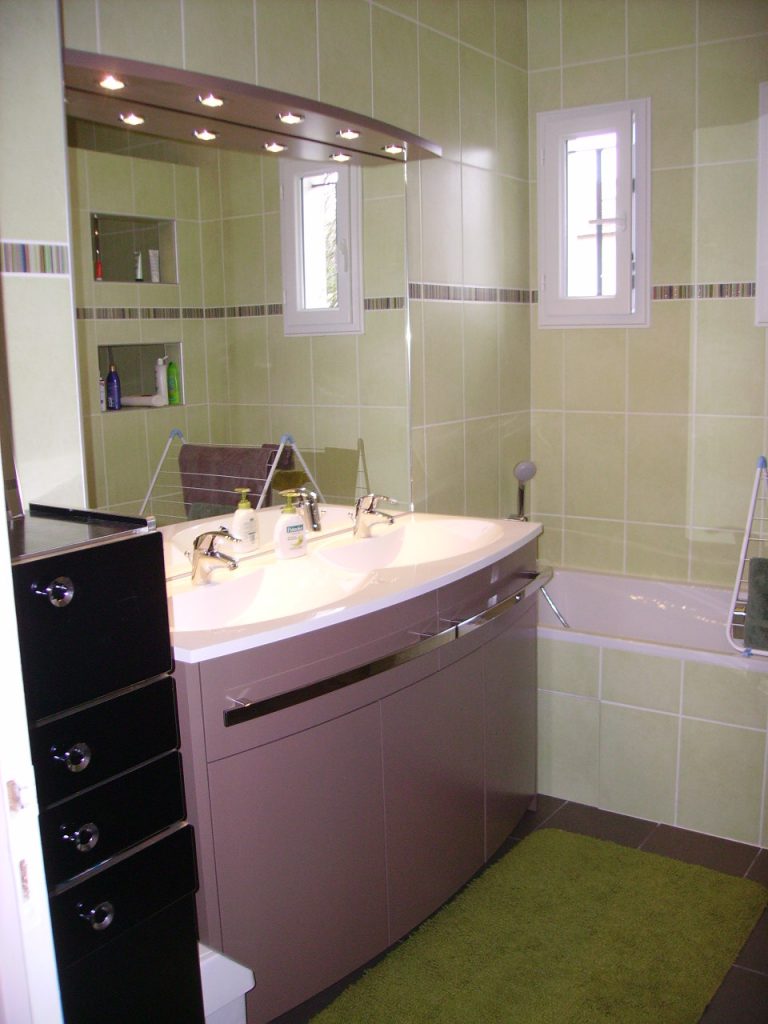 15 février 2011 Création d’une salle de bain avec baignoire, douche et meuble double vasques, février 2011 à Longjumeau