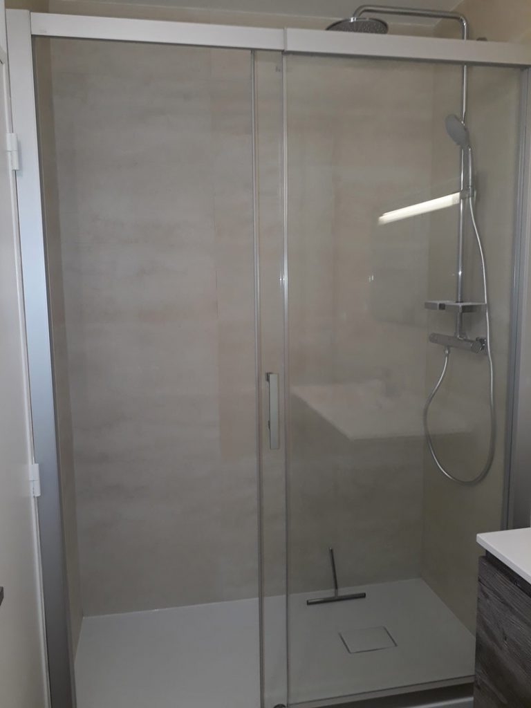 17 octobre 2018 Salle de bains rénovée : transformation d’une baignoire en douche à Palaiseau en Septembre 2018.