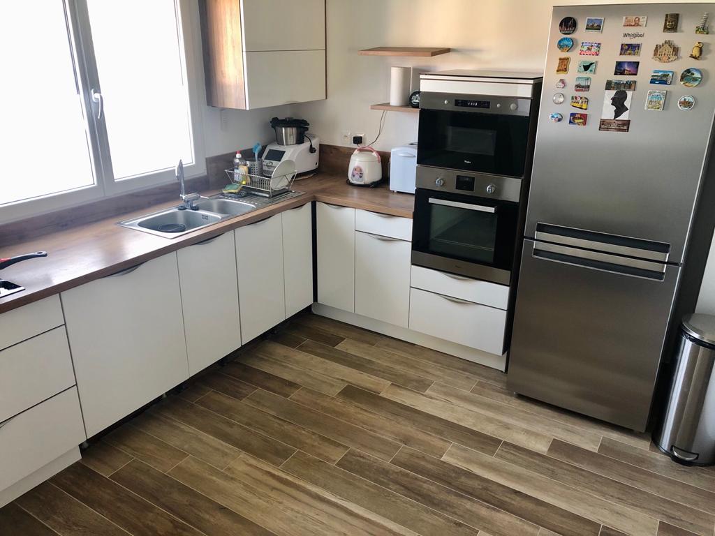 Les clients viennent d’acheter ce pavillon. Avant de d’emménager ils souhaitaient déplacer la porte de la cuisine pour modifier la circulation et créer un espace plus cocooning dans la salon.